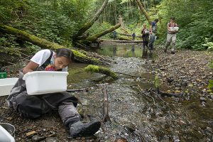 Mya Fisher looking for macroinvertebrates.