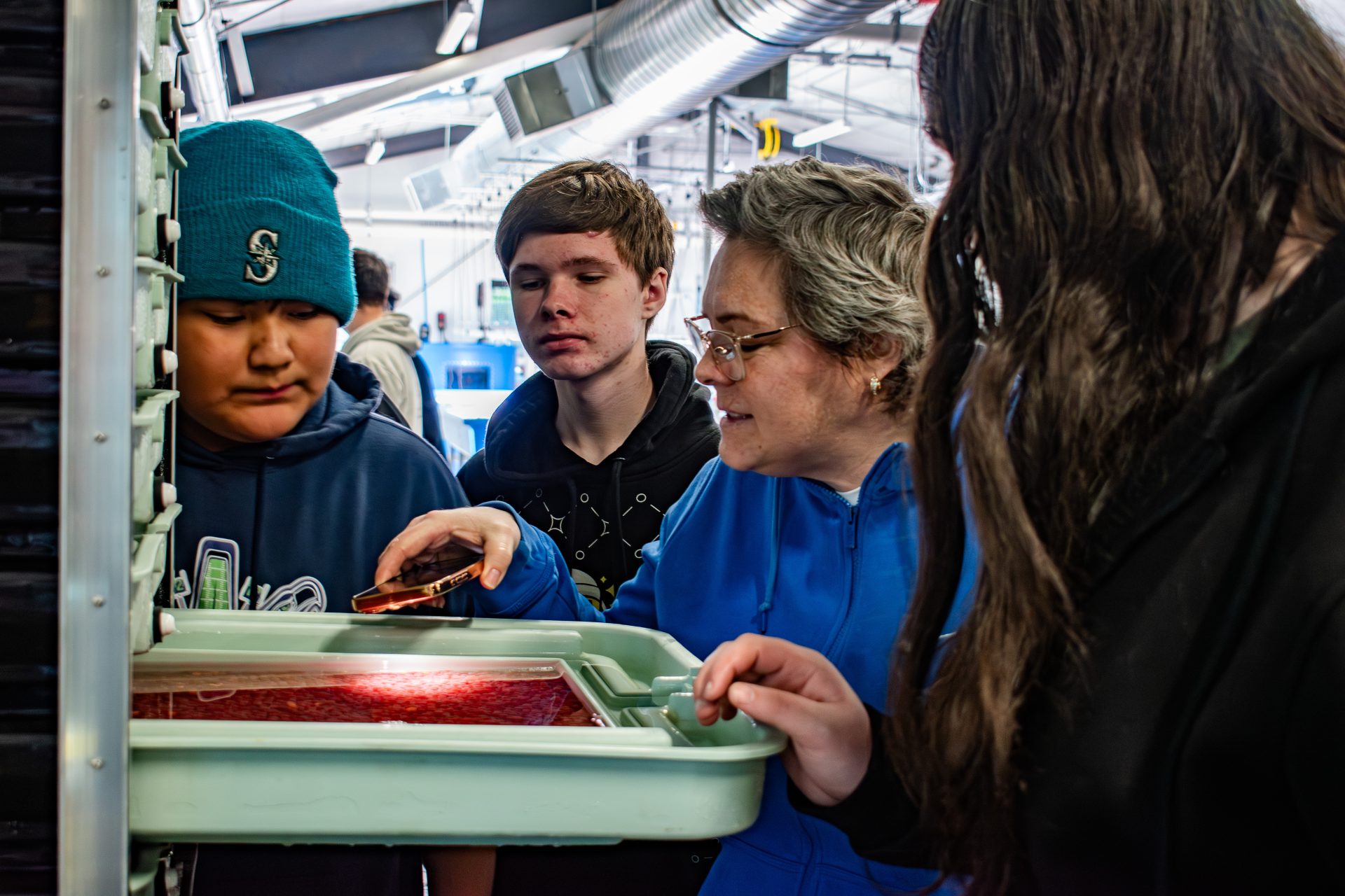 Mussel larvae get to their rearing areas by hitching a ride on the gills and fins of returning salmon. They drop off at the right time and burrow into the sediment, maturing into filter feeders that improve water quality.